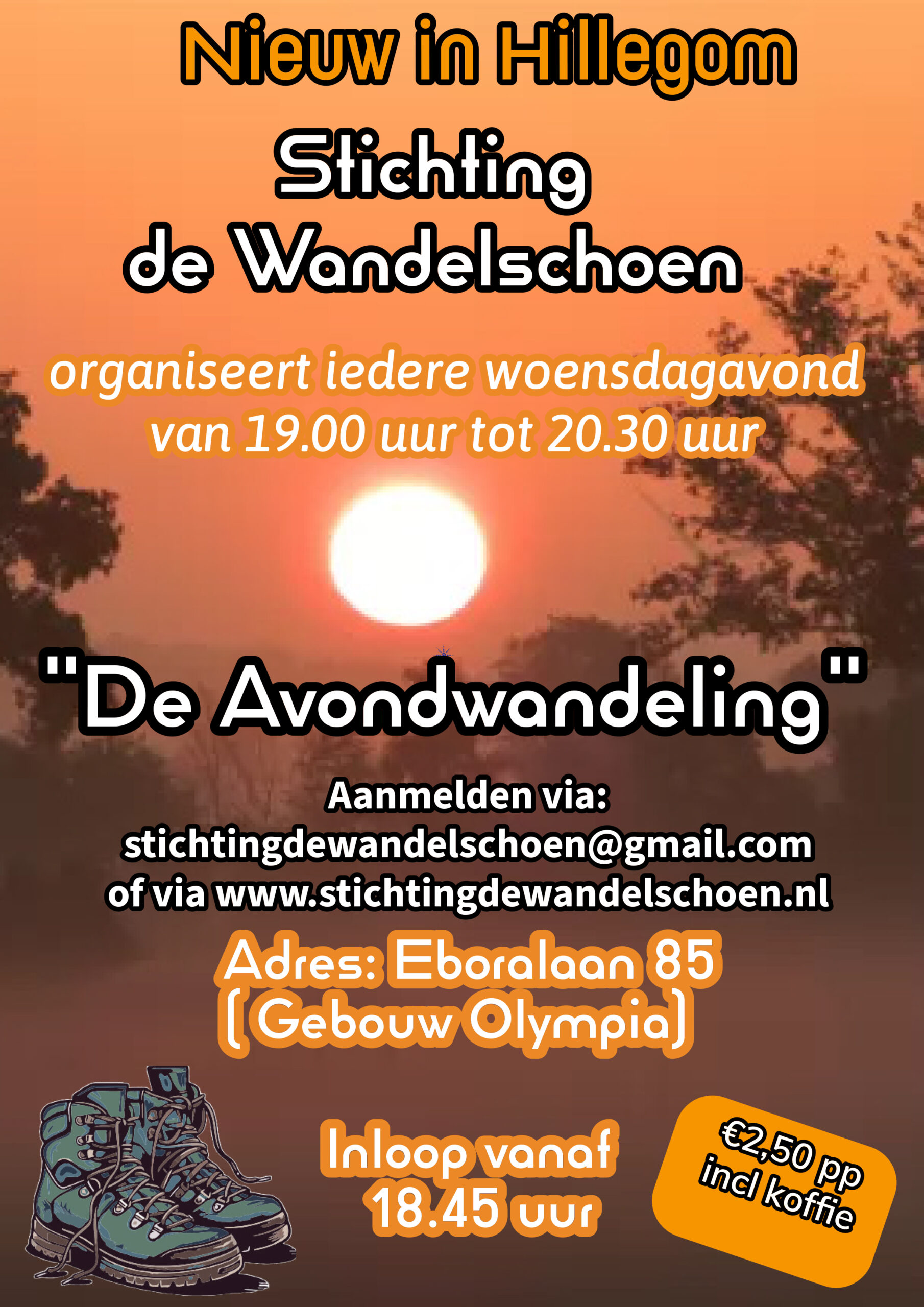 Nieuw in Hillegom! Stichting de Wandelschoen organiseert iedere woensdagavond van 19.00-20.30 uur de Avondwandeling!